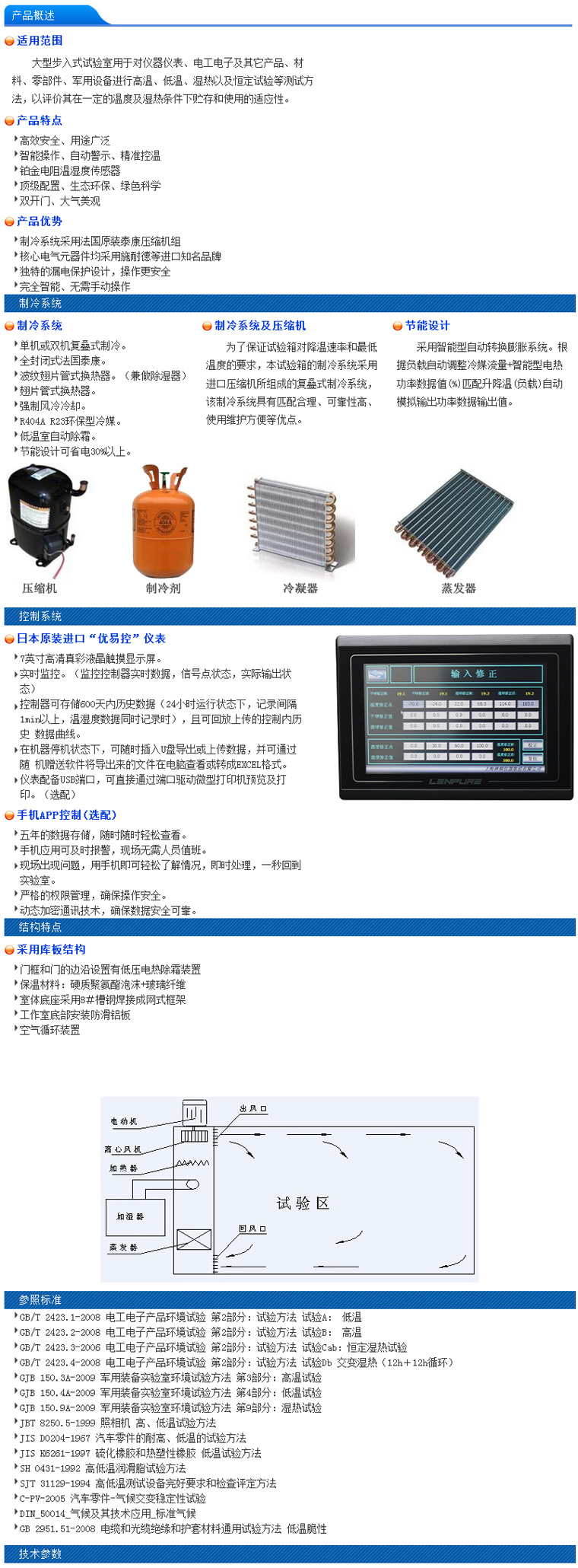 本類試驗(yàn)箱符合國家標(biāo)準(zhǔn)GB10589《低溫試驗(yàn)箱技術(shù)條件》和GB11158《高溫試驗(yàn)箱技術(shù)條件》帶濕度試驗(yàn)箱還滿足GB10586《濕熱試驗(yàn)箱技術(shù)條件》。具體設(shè)備參數(shù)以技術(shù)協(xié)議為準(zhǔn)。